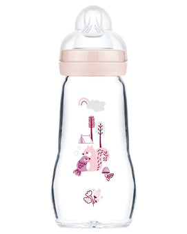 زجاجة رضاعة مام زجاجية 260 مل - وردية