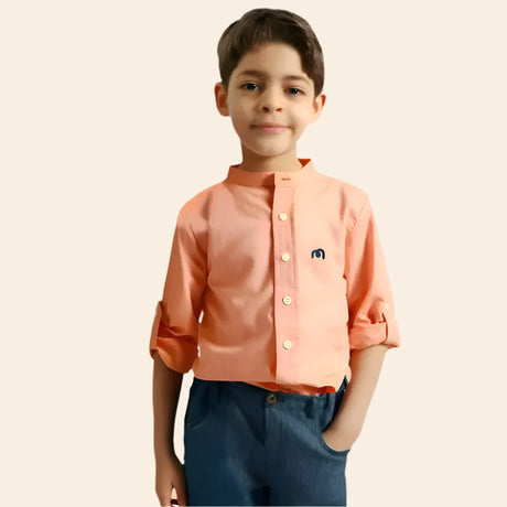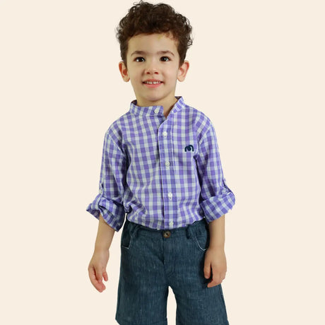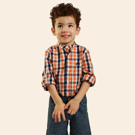 قميص مون كاروهات للأولاد – أزرق وبرتقالي