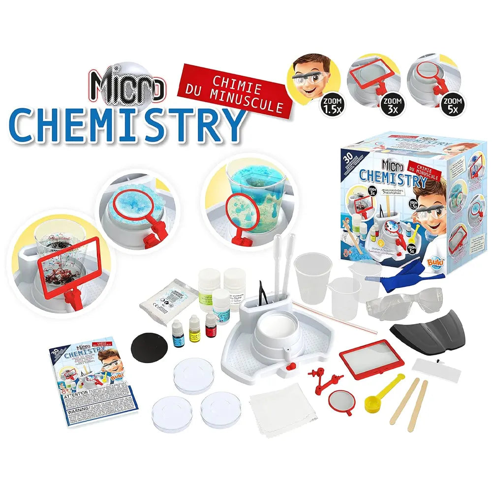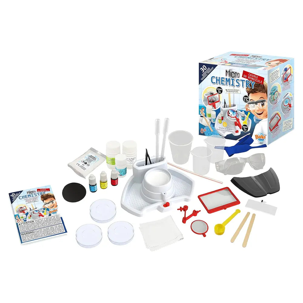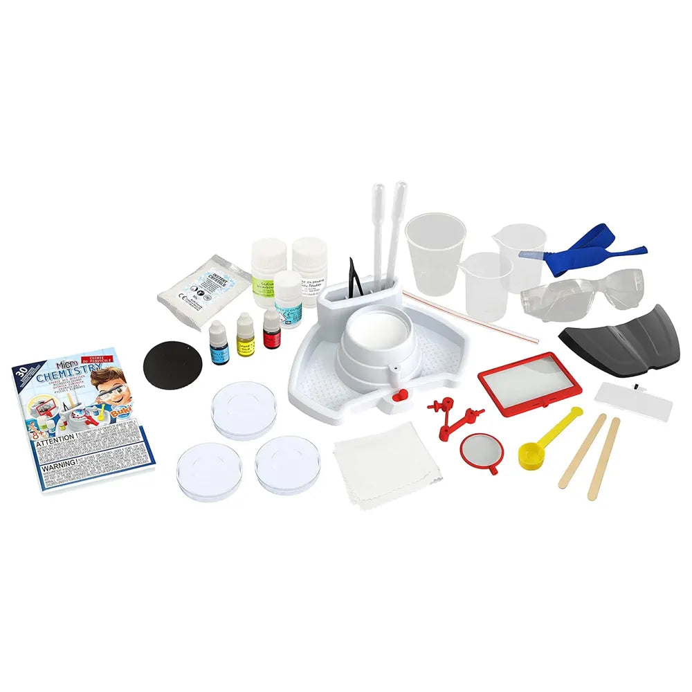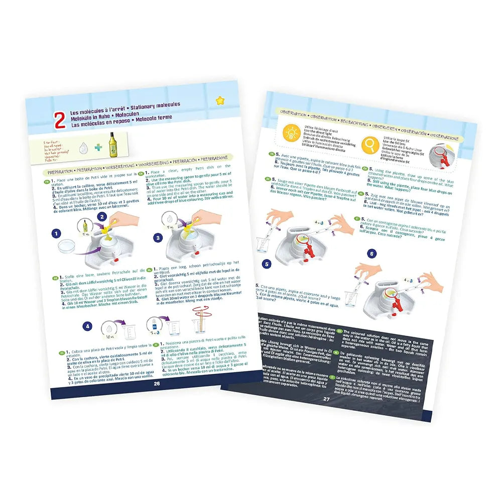 اكتشف الكيمياء عن قرب مع مجموعة مايكرو كيمياء – كيمياء الأشياء الصغيرة. بفضل المحطة المضاءة ومستويات التكبير المختلفة، يمكنك ملاحظة التفاعلات الكيميائية بالتفصيل أثناء إجراء 30 تجربة مسلية: انتشار الألوان، مصباح الحمم، الثلج السحري، البلورات الفورية...مجموعة مثالية لتعريف الأطفال بالعلوم من سن 8 سنوات.