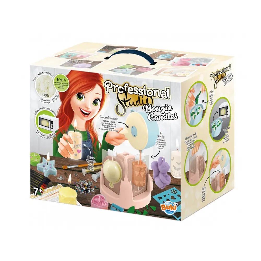 اصنع وخصص شموعًا طبيعية رائعة بفضل Professional Studio Candles ! يتيح لك هذا الصندوق الكامل صنع شموع من شمع الصويا بأشكال عصرية وزخرفية. بفضل الوعاء الخاص المزود بغطاء آمن، يمكن إذابة الشمع بسهولة وأمان في الميكروويف.بفضل 6 قوالب و3 قطاعات وعدد كبير من الملحقات، يمكنك إنشاء ما يصل إلى 9 نماذج مختلفة من الشموع. قم بتزيينها بأقلام تلوين شمع ملونة، وبريق، وقلم ذهبي وحتى إخفاء قلادة فيها لتقديم مفاجأة فريدة ! مجموعة إبداعية مثالية للأطفال بعمر 7 سنوات وما فوق.