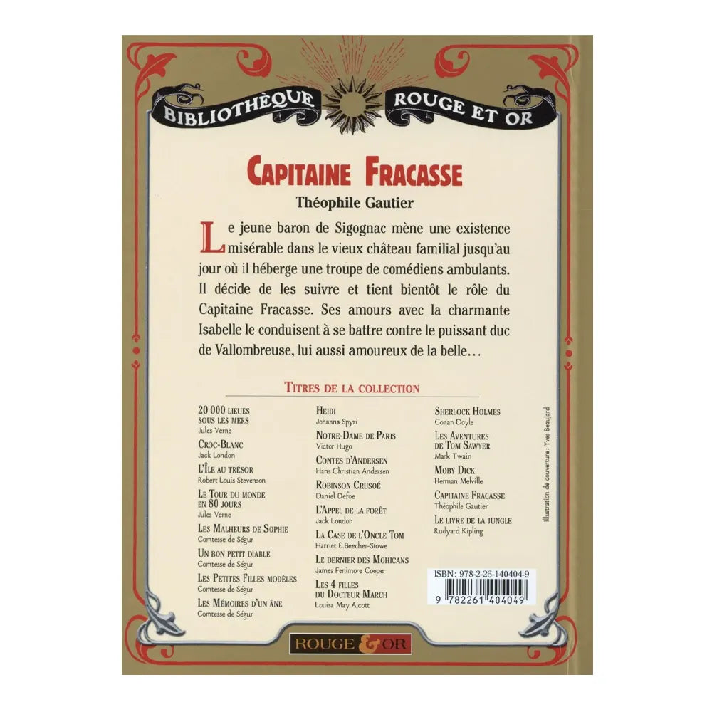 اكتشف كابتن فراكاس، رواية مغامرات وحب لـ تيوفيل غوتييه. يرى البارون الشاب دي سيغونياك، الذي يعيش في فقر مدقع في القلعة العائلية القديمة، حياته تنقلب رأسًا على عقب عندما يستضيف فرقة من الممثلين المتجولين. يقرر أن يتبعهم وسرعان ما يصبح كابتن فراكاس. بين قصص حبه لإيزابيل الساحرة ومعاركه ضد الدوق القوي فالومبروز، تنقل هذه القصة القراء الشباب إلى مغامرة مليئة بالشجاعة والرومانسية والمنعطفات المثيرة.كلاسيكية في أدب الشباب، مثالية للأطفال ابتداءً من 6 سنوات.
