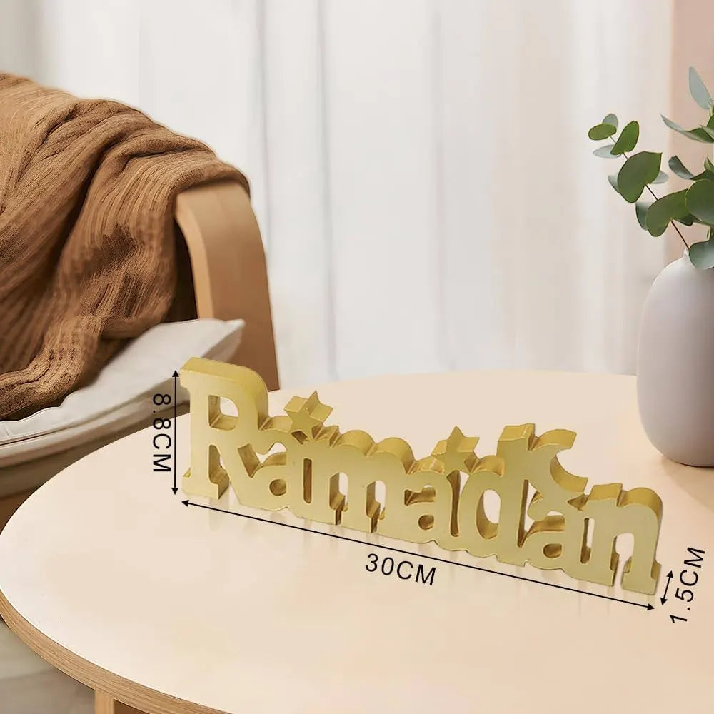 إنه ديكور خشبي يمثل كلمة «رمضان».