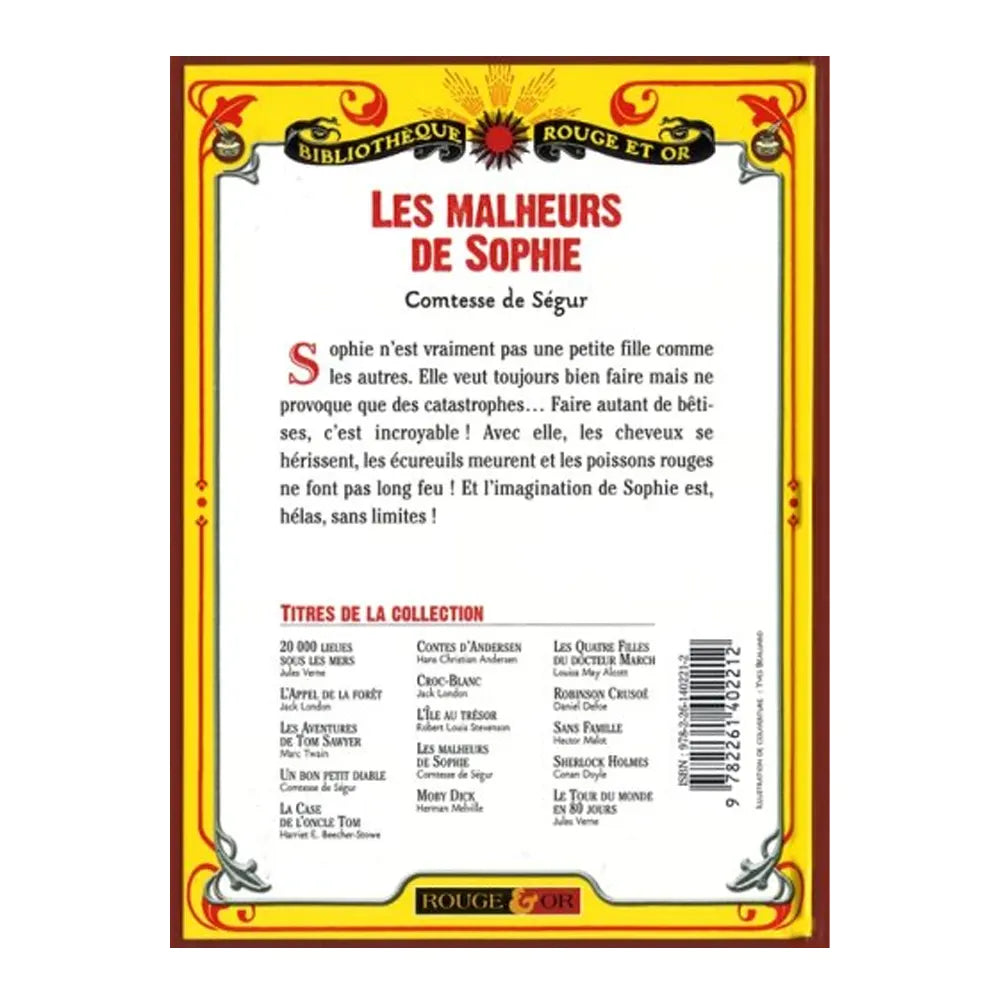 اكتشفوا مآسي صوفي، إحدى كلاسيكيات أدب الأطفال للكاتبة صوفي دي سيغور. صوفي ليست طفلة عادية أبداً: فهي دائماً تريد أن تفعل الخير، لكن نواياها غالباً ما تسبب الكوارث ! بين الشعر المنتصب، والسناجب التي تتعرض لسوء المعاملة، والأسماك الحمراء التعيسة، يأخذ خيالها اللامحدود القراء الصغار في مغامرات مضحكة ومليئة بالمفاجآت.