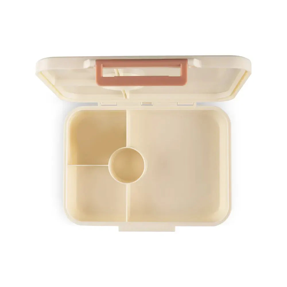 يسمح لك صندوق الغداء بينتو، المصمم بـ 4 حجيرات وسهل الغسل، بفصل الطعام إلى 4 أقسام مختلفة، بما في ذلك قسم مستدير. يعد هذا واحدًا من أفضل صناديق الغداء للأطفال.