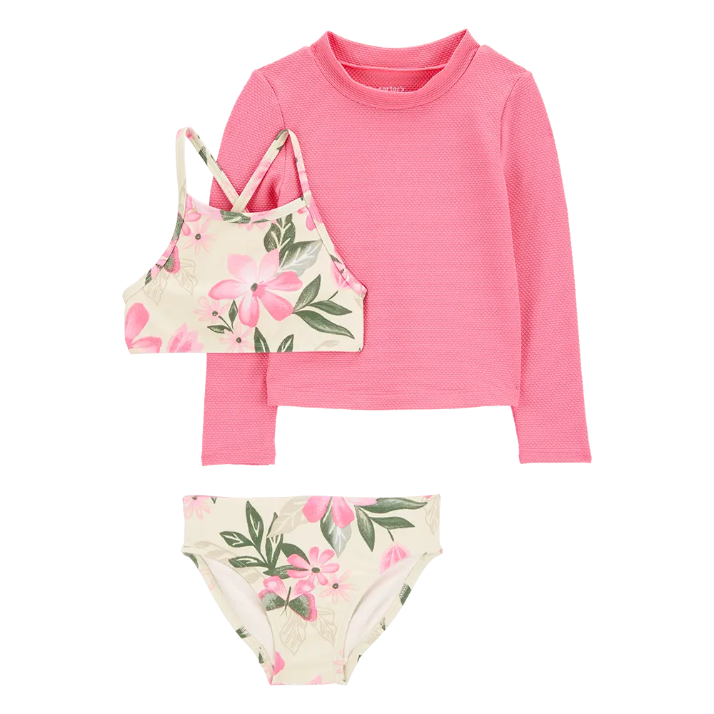 لباس سباحة من 3 قطع مضاد للأشعة فوق البنفسجية للبنات من كارترز - بنقشة زهور وردية