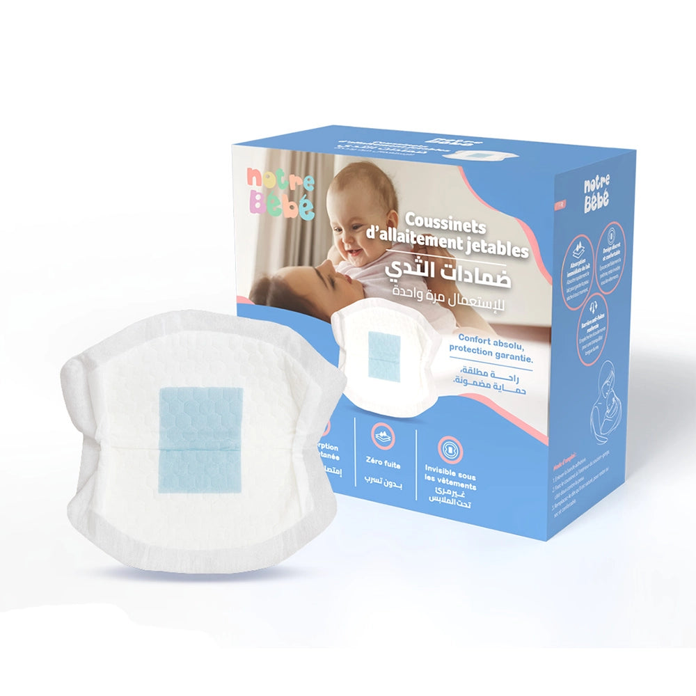 تم تصميم وسادات الرضاعة "نوتر بيبي" لتلبية متطلبات الأمهات الباحثات عن الراحة والحماية والنظافة. بفضل تقنية إس.إيه.بي بلو، تضمن امتصاصًا فوريًا وحفاظًا على الجفاف الأمثل، حتى في حالة التدفق الكبير.