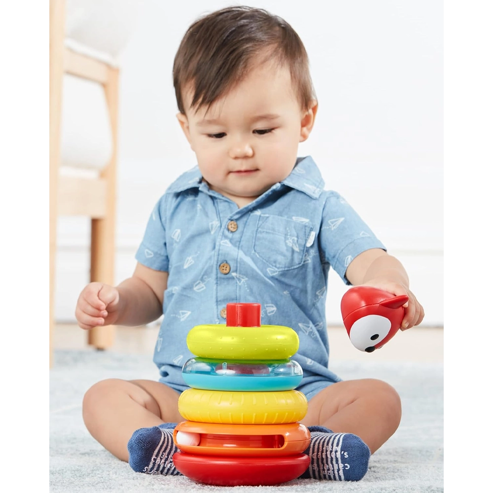 قم بتكديس، فرز، هز ودحرج مع لعبة التكديس الخاصة بنا للرضع.