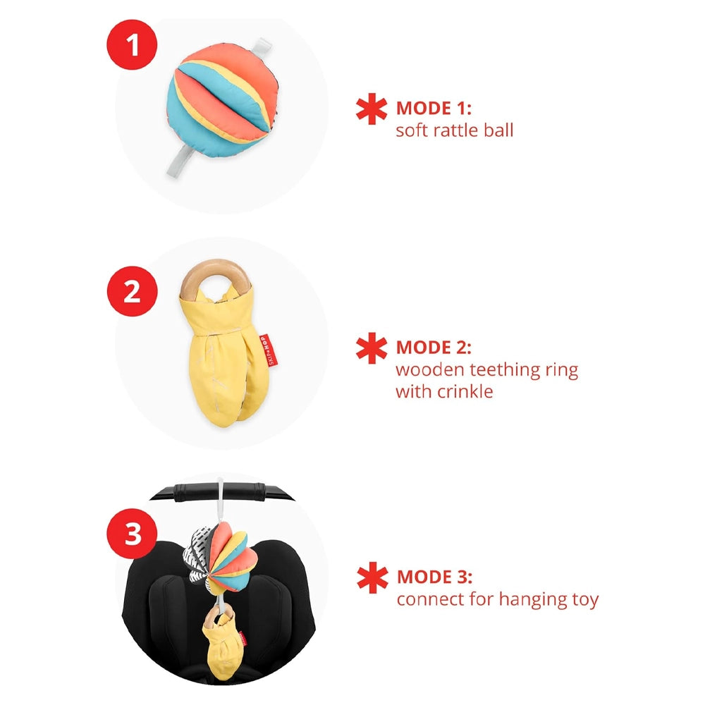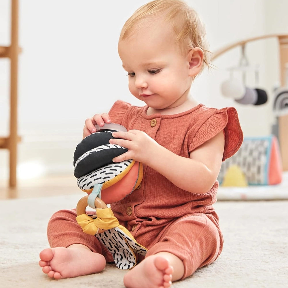 تم تصميم لعبة ديسكوفيروسيتي 3 في 1 للأطفال بالتعاون مع خبراء تعليم مونتيسوري، وهي تشجع على التحفيز البصري والمهارات الحركية والمزيد، في المنزل وأثناء التنقل.تتيح لك اللعبة المكونة من قطعتين استخدام كل عنصر على حدة أو ربطهما معًا لثلاث طرق مختلفة للعب.تتميز كرة الخشخيشة الناعمة بنمط عالي التباين على جانب وألوان زاهية على الجانب الآخر، بينما تعتبر الحلقة الخشبية ذات المصدر المستدام مع قماش قوي بنمط أبيض وأسود مثالية للإمساك والتسنين.