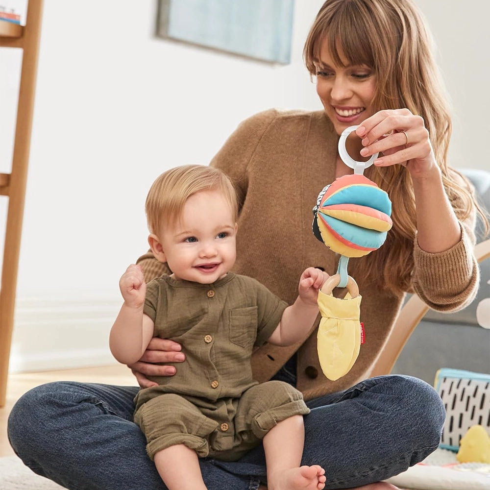 - كرة خشخيشة ناعمة بنمط عالي التباين ولمسات من الألوان
