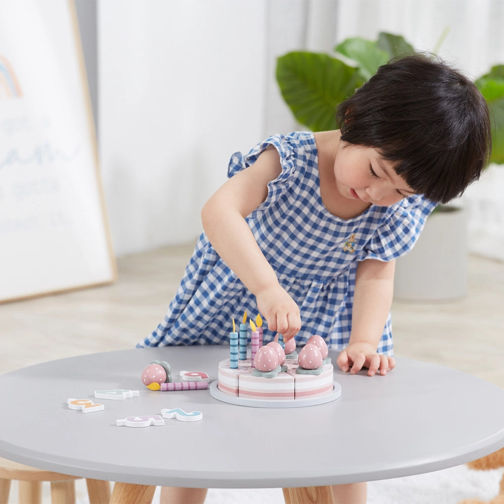 مصنوعة من خشب الزان عالي الجودة، الكعكة مطلية بدهانات غير سامة بألوان ناعمة وهادئة، تجذب العين وتثير الفضول. جميع الدهانات المستخدمة آمنة وتتوافق مع معايير السلامة EN71 و ASTM، مما يضمن اللعب الآمن للأطفال.