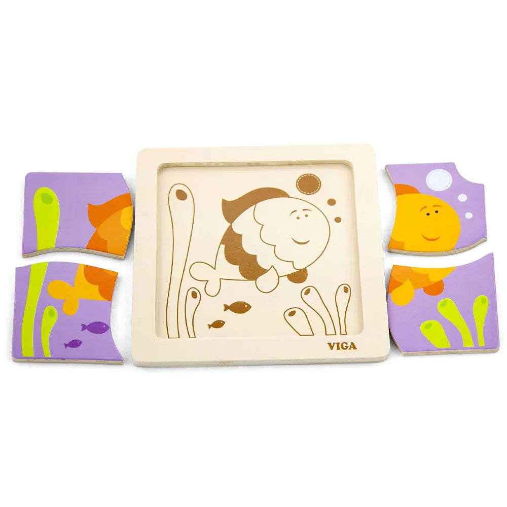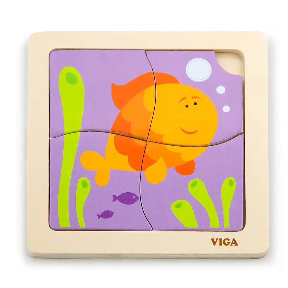 بازل الأسماك المسطح من فيغا تويز هو لعبة تعليمية خشبية مصممة للأطفال من عمر 12 شهرًا فما فوق. يتكون هذا البازل من قطع ملونة تمثل الأسماك، ويسمح للصغار بتنمية مهاراتهم الحركية الدقيقة، والتنسيق بين العين واليد، وقدرتهم على الملاحظة أثناء استكشافهم للحيوانات البحرية.