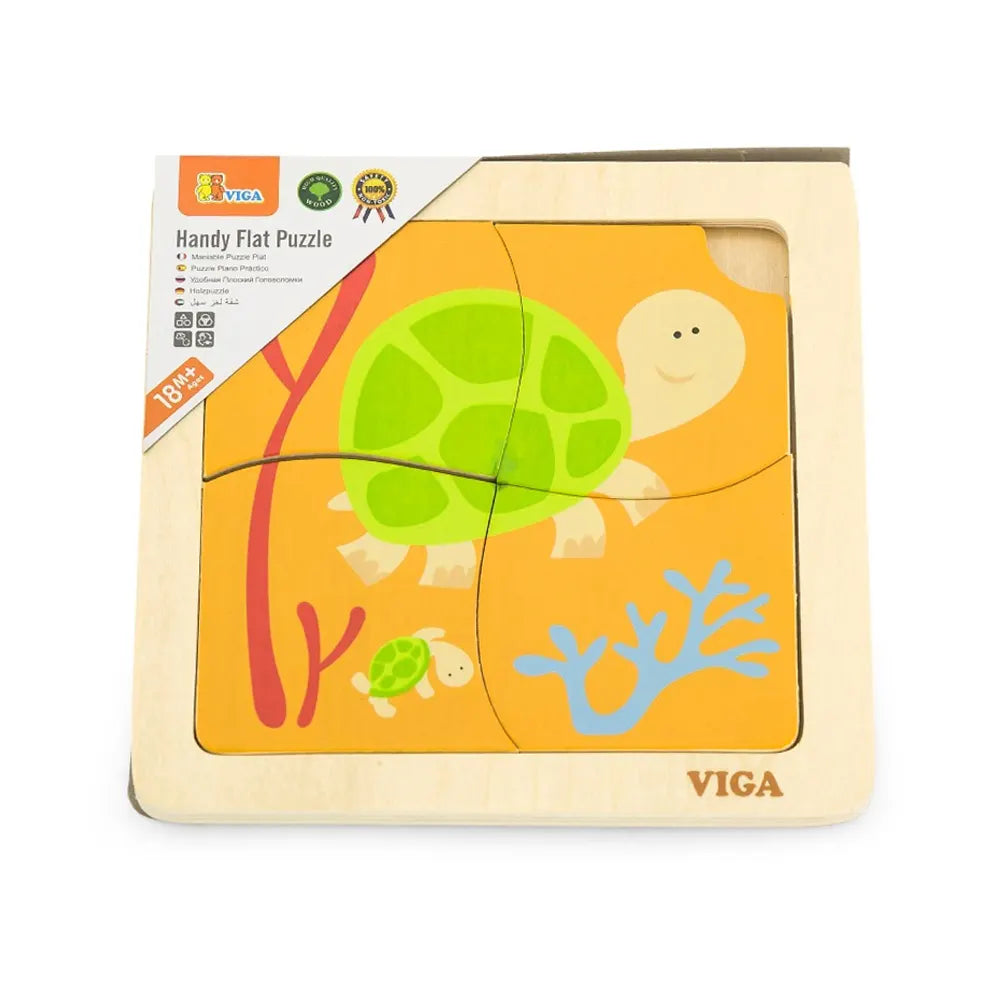 بازل السلاحف المسطح من فيغا تويز هي لعبة تنموية تعليمية مصممة للأطفال من عمر 12 شهرًا فما فوق. مع 4 قطع ملونة لتركيبها على لوح خشبي مصور، تسمح للصغار بتطوير مهاراتهم الحركية الدقيقة، والتناسق بين اليد والعين، والتعرف على الأشكال والألوان.