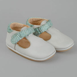 Cuteshez Leather T-Strap Shoe - Beige Flower