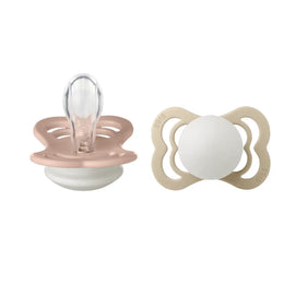BIBS Set of 2 Symmetrical Supreme Silicone Pacifiers - Blush/Vanilla - GLOW