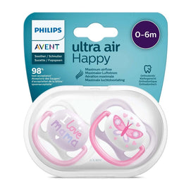 Avent Set of 2 Ultra Air Collection Happy Pacifiers 0-6m Girl