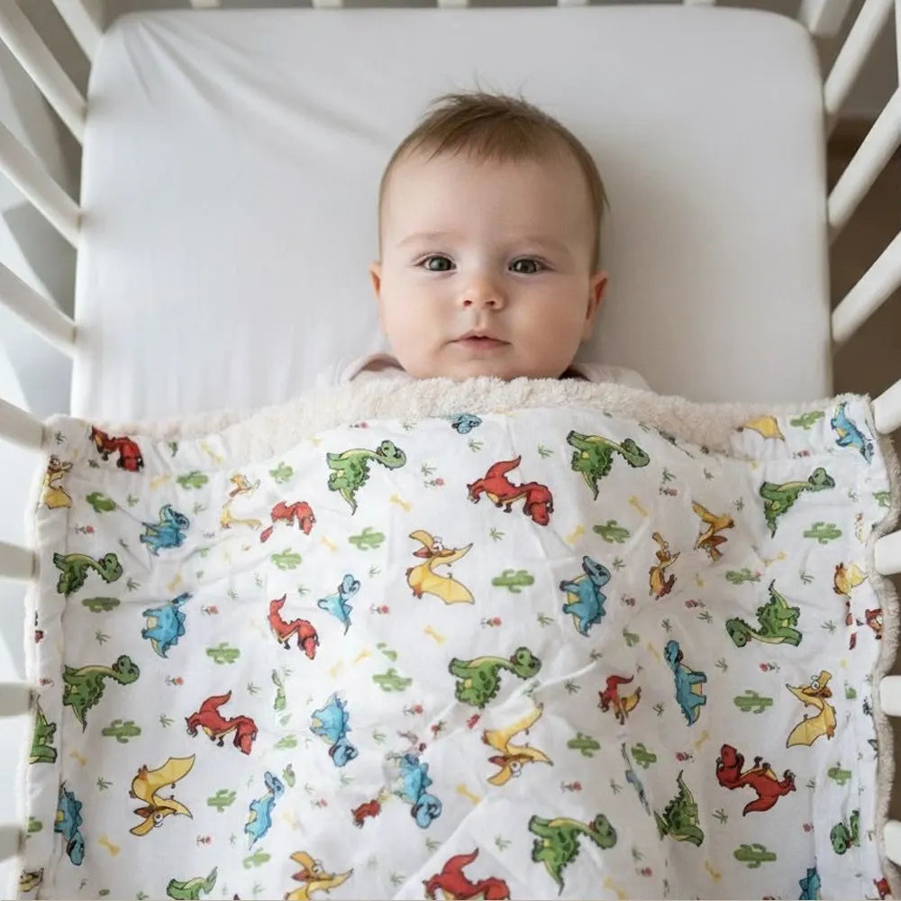 BébéYo Couverture Double Face Blanc Cassé - Dinosaures