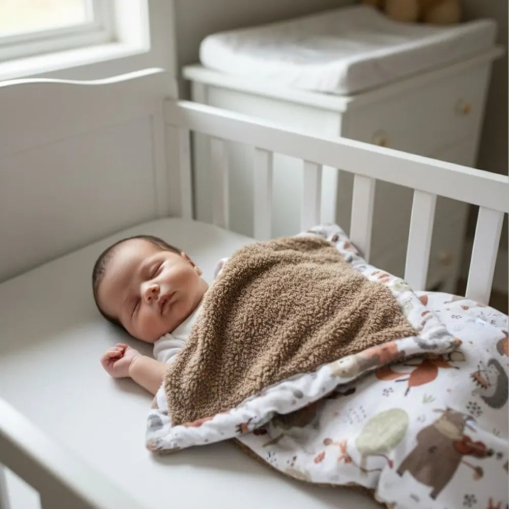 BébéYo Couverture Double Face Maron - Animaux de la Forêt