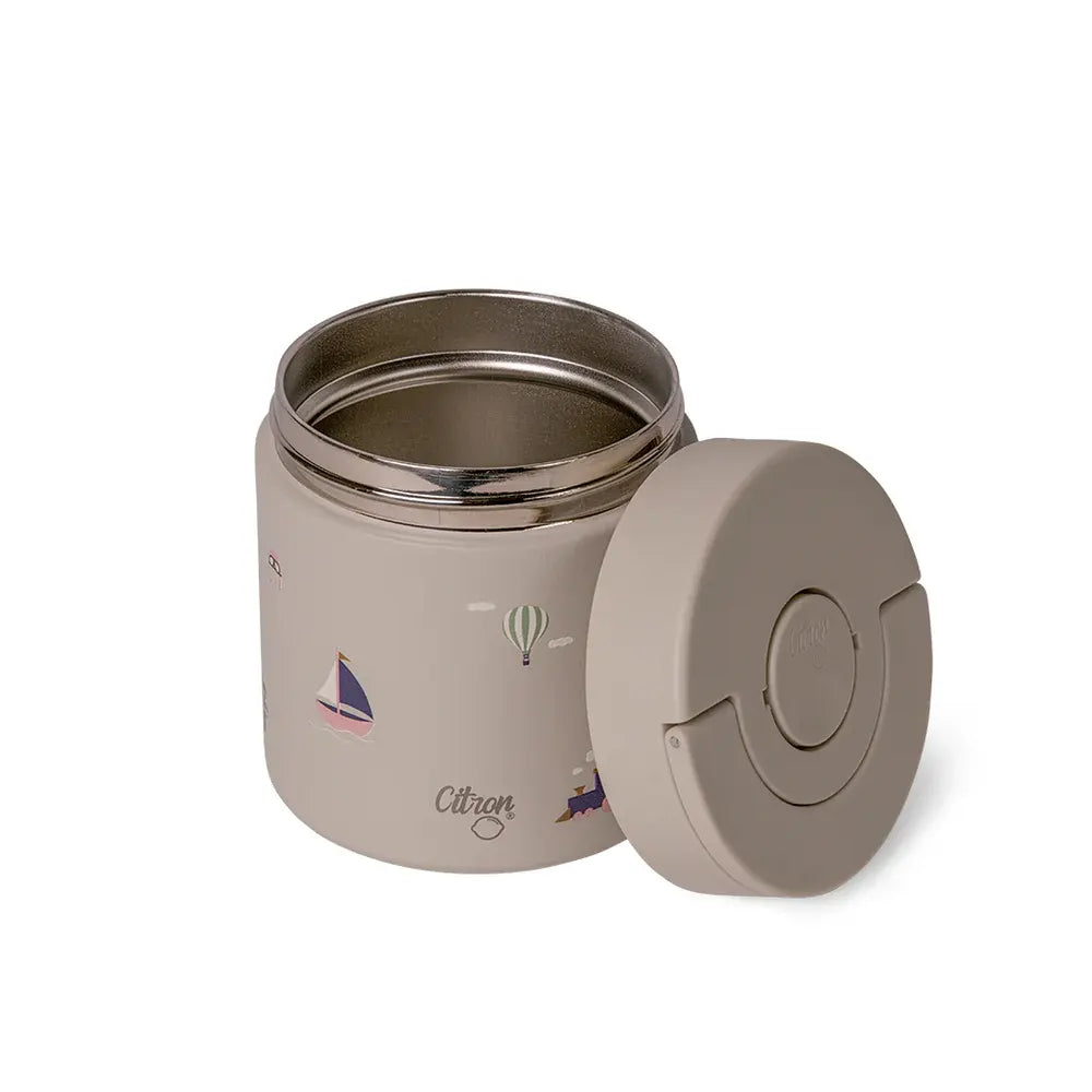 Emportez les repas de votre enfant partout avec la boîte alimentaire thermique Citron Véhicules. Sa capacité de 350 ml permet de garder les repas chauds jusqu’à 6 heures et froids jusqu’à 7 heures grâce à son isolation à triple paroi. Le couvercle ergonomique, étanche et facile à ouvrir, ainsi que le large goulot, assurent une utilisation pratique et sûre.