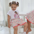 Give your child the comfort and lightness of summer with this set featuring a white t-shirt made of high-quality cotton, soft to the touch and pleasant to wear even on the hottest days. Its delicate print adds a touch of softness and charm to this essential basic.
