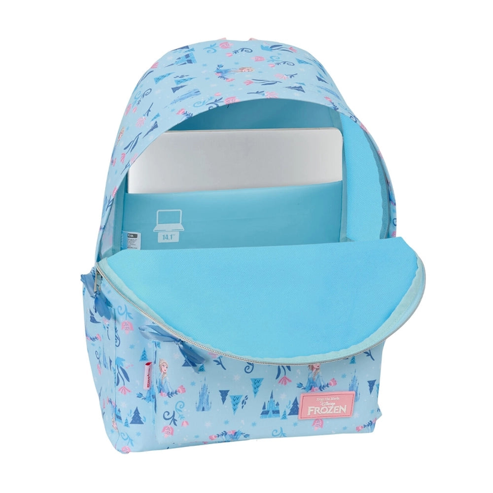 Le sac à dos pour ordinateur portable Frozen Ice Magic bleu mesure 31 x 43 x 13 cm et est conçu pour les enfants.