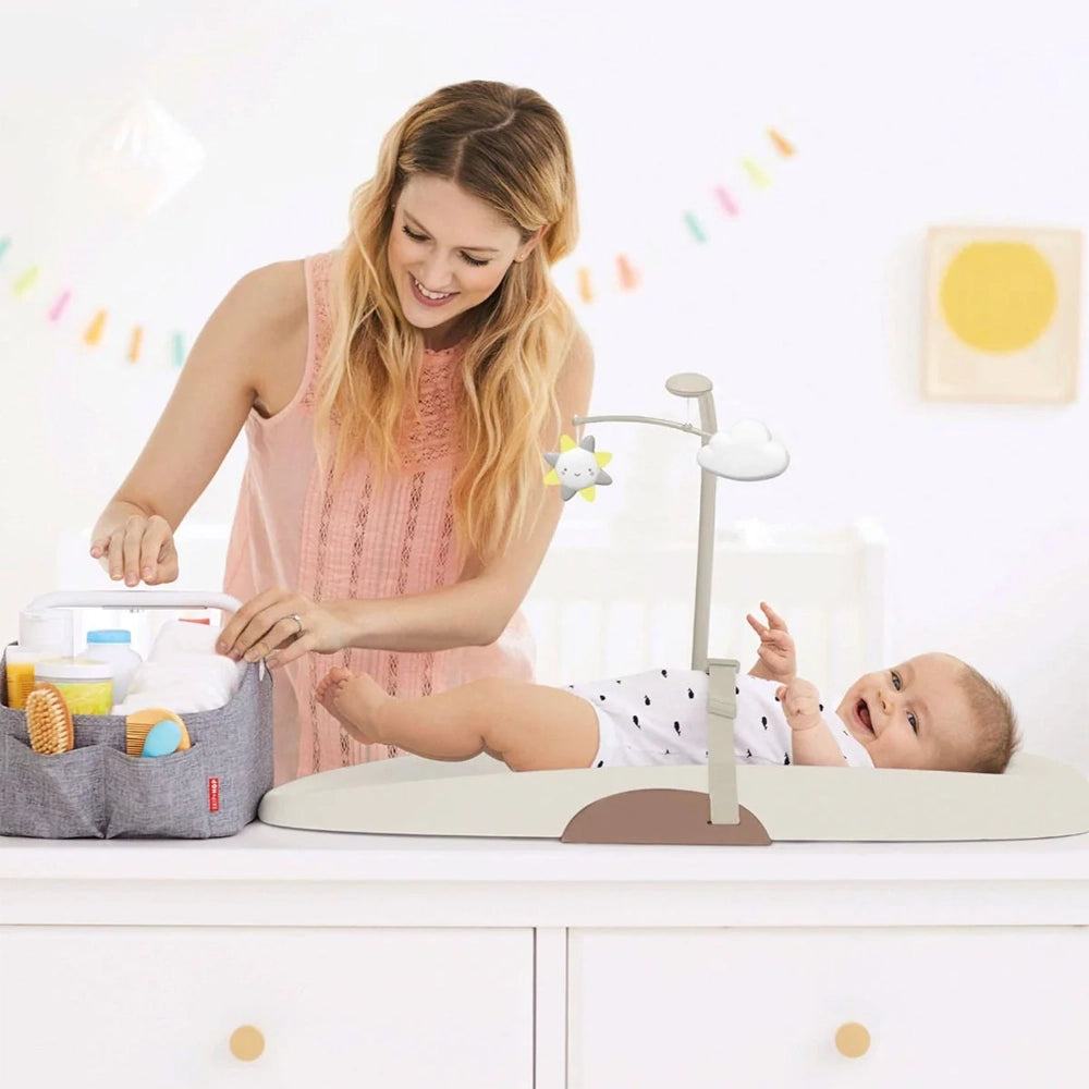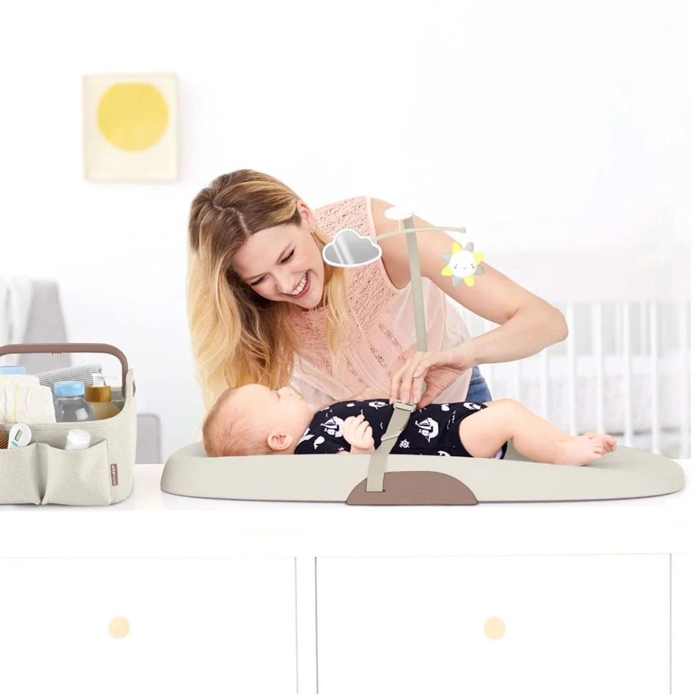 Simplify your baby's changing time with the Skip Hop Nursery Style Wipe-Clean changing pad. Designed for modern parents, it offers an easy-to-clean surface, eliminating the need for extra covers.