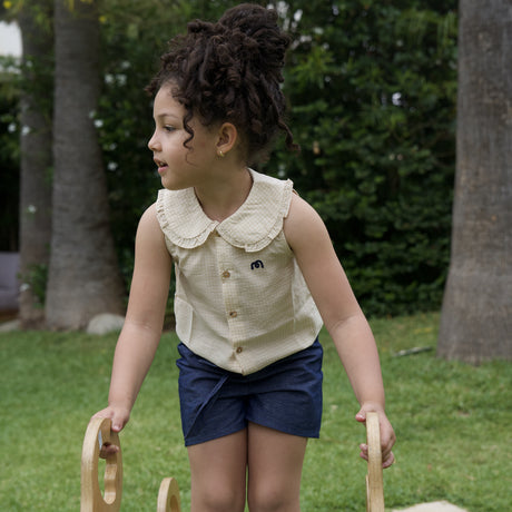 Camisa Loly Sin Mangas de Cuadros - Beige