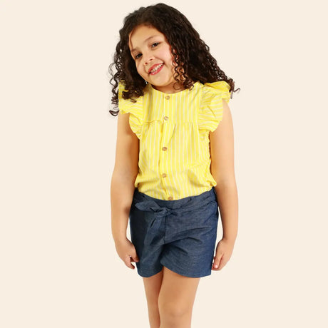 Camisa Zayna con Mangas con Volantes de Rayas – Amarillo y Blanco