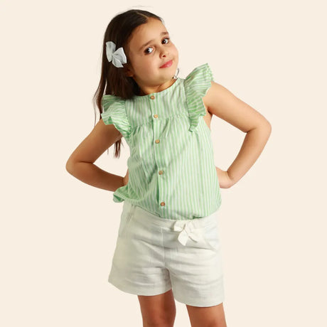 Camisa Zayna con Mangas con Volantes de Rayas – Verde Pastel y Blanco