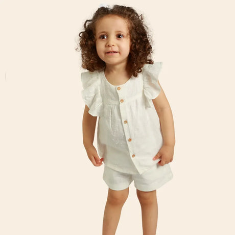Camisa Zayna con Mangas con Volantes y Lunares Bordados - Blanca