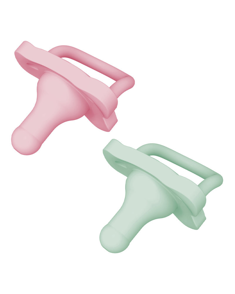 Chupetes de silicona Dr. Brown's HappyPaci (paquete de 2), 0-6 meses, rosa y verde