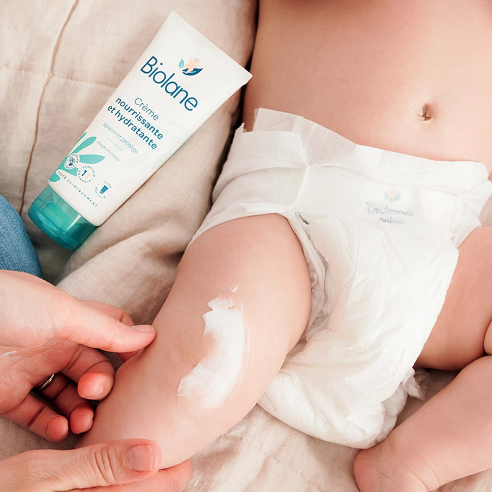Formulada con 98 % de ingredientes de origen natural, la crema nutritiva e hidratante Biolane protege la delicada piel del bebé a la vez que le ofrece una hidratación duradera, flexibilidad y confort.