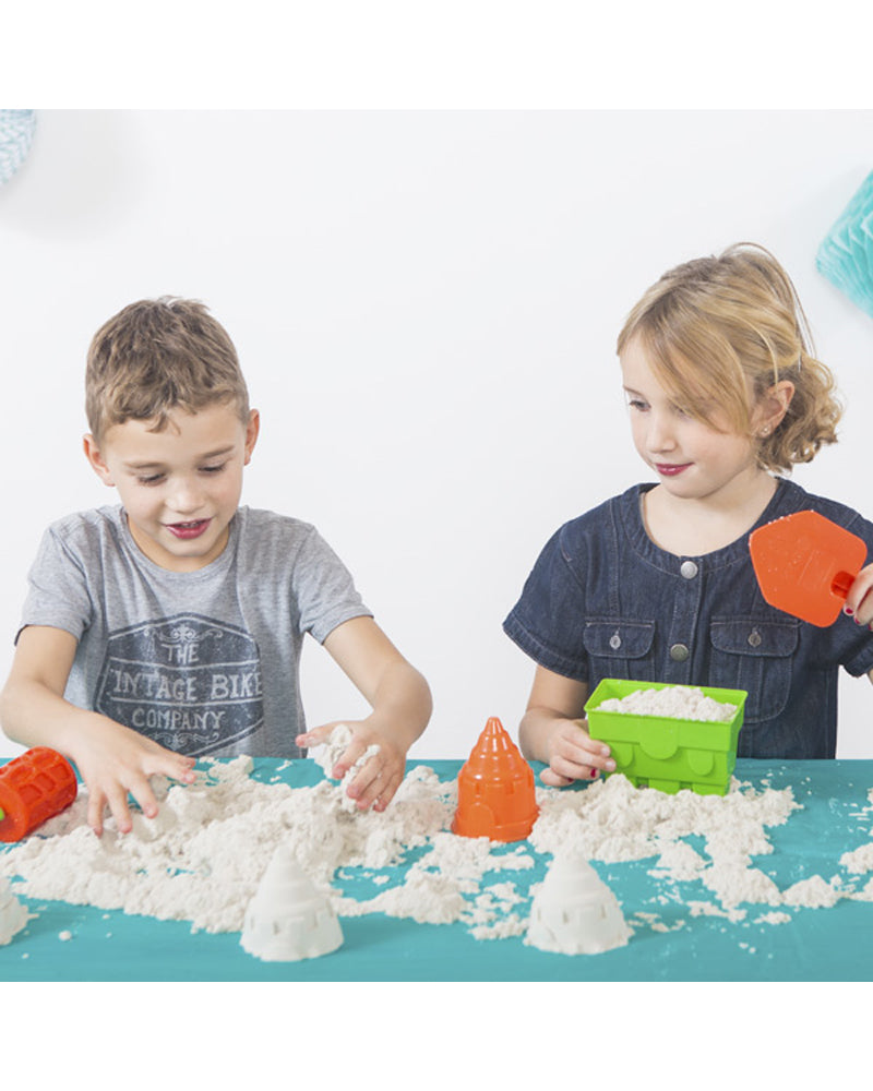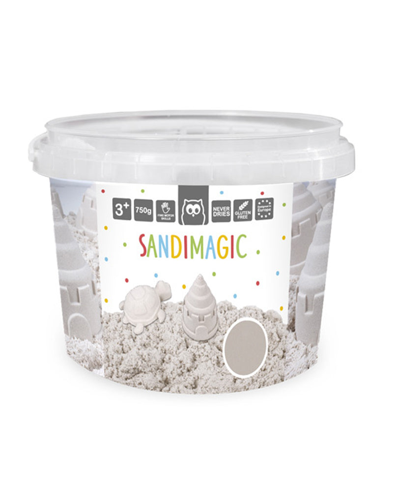 ¡Nuevo! Sandimagic es arena pero con una textura muy especial: muy, muy fina y suave, nunca se seca. Es ideal para hacer figuras con moldes, para hacer formas con las manos, para hacer estructuras ligeras... que podrás hacer y deshacer durante horas. Esta es una actividad súper divertida para niños.