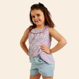 Dale un toque fresco y colorido al armario de tu hija con la túnica floral Amber. Esta túnica sin mangas, ligera y cómoda, es perfecta para los días de verano.