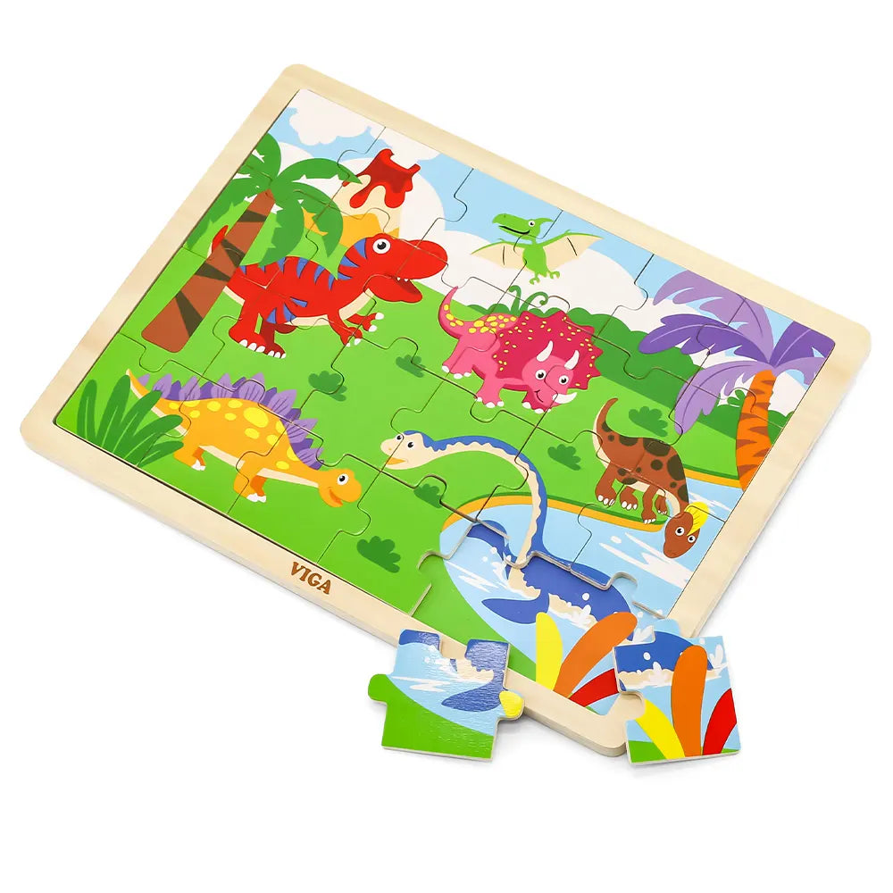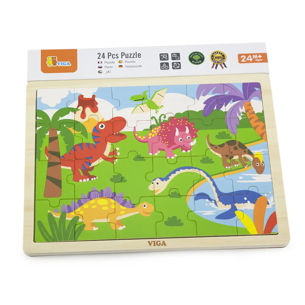 Viga Toys Puzle de 24 Piezas Dinosaurio de Madera - 24M+ :
