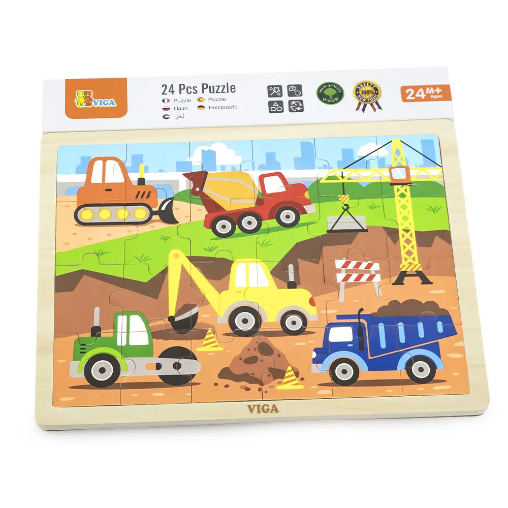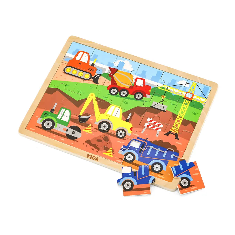 Puzle de 24 piezas de vehículos de construcción de madera Viga Toys - 24M+:
