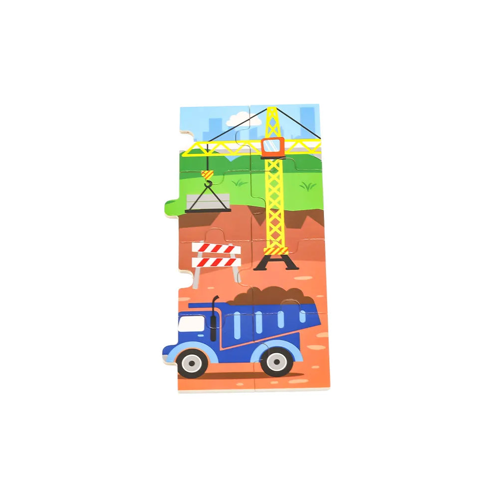 Descubre el mundo de los vehículos de construcción con este puzle de madera Viga Toys de 24 piezas. Ilustrado con grúas, excavadoras y camiones en acción, ayuda a los niños a desarrollar su coordinación ojo-mano, concentración y sentido de la observación mientras se divierten.