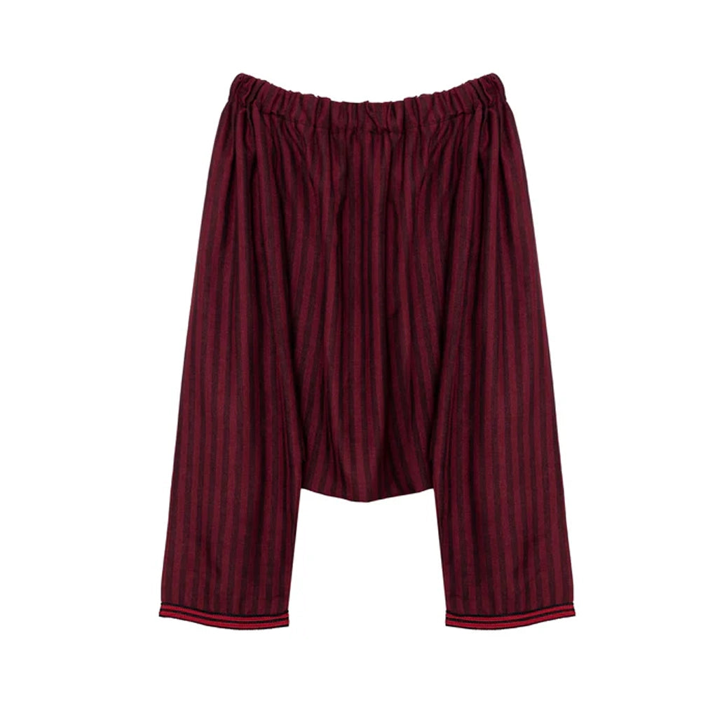 Découvrez le charme intemporel de notre Jabador deux pièces pour garçon, une tenue pensée pour allier élégance, simplicité et confort absolu. Conçu dans un tissu doux au toucher, l’ensemble se compose d’un haut noir raffiné, sublimé par des finitions bordeaux foncé, et d’un pantalon ample orné de fines rayures, apportant une touche traditionnelle au style moderne.