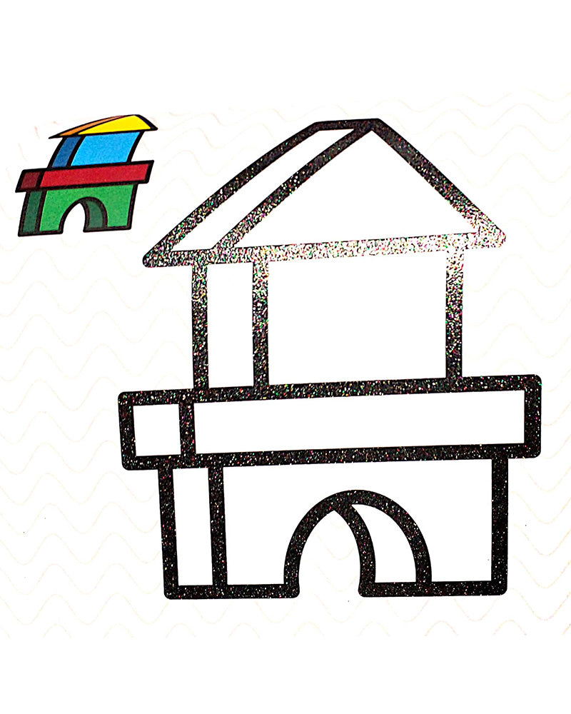 Des dessins simples aux gros traits en relief brillants pour aider les petites mains à colorier sans dépasser.