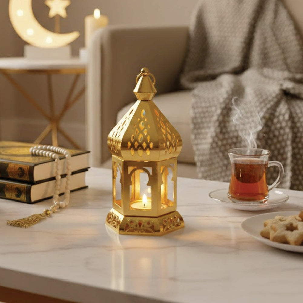 Lanterne Décorative en Métal et Verre - Dorée :