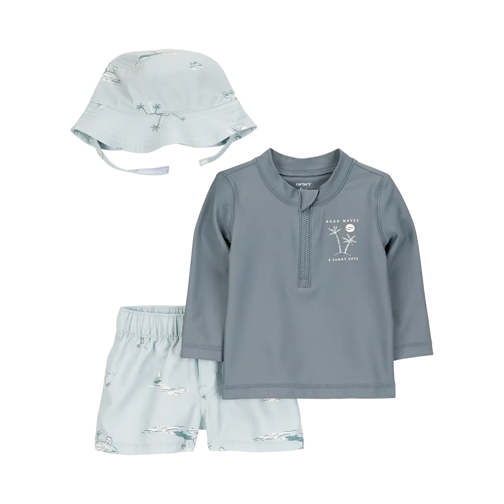 Maillot de Bain Anti-UV 3 Pièces Bébé Garçon Carter's - Gris & Bleu