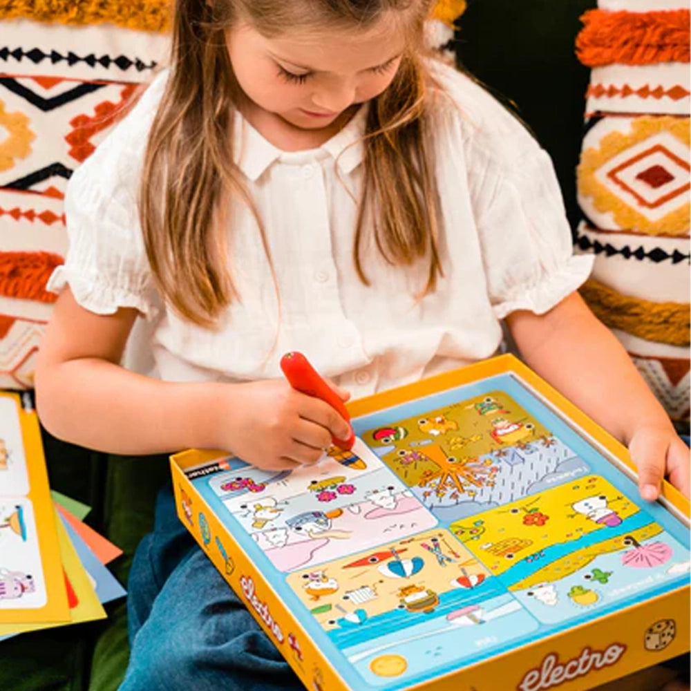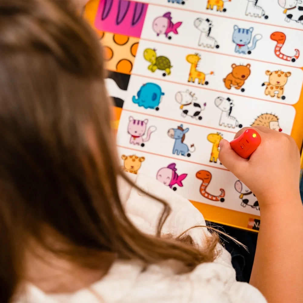 Apprendre devient un jeu grâce à ce jeu de questions-réponses qui stimule l’observation, la logique, les couleurs, les formes et les chiffres. Pour chaque question, l’enfant utilise le stylo pour pointer la bonne réponse. Si le stylo s’allume, c’est gagné !