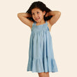 La robe Ania bleu ciel est une robe mi-longue légère, parfaite pour les beaux jours. Elle est dotée de fines bretelles à nœuds ajustables qui offrent un réglage personnalisé et une touche délicate. Le corsage smocké élastique garantit un confort optimal tout en épousant joliment la silhouette.