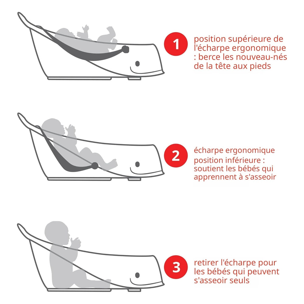 Retirez l'écharpe lorsque bébé a maîtrisé la position assise et baignez facilement bébé dans la baignoire spacieuse - pas de bosses en plastique inconfortables.