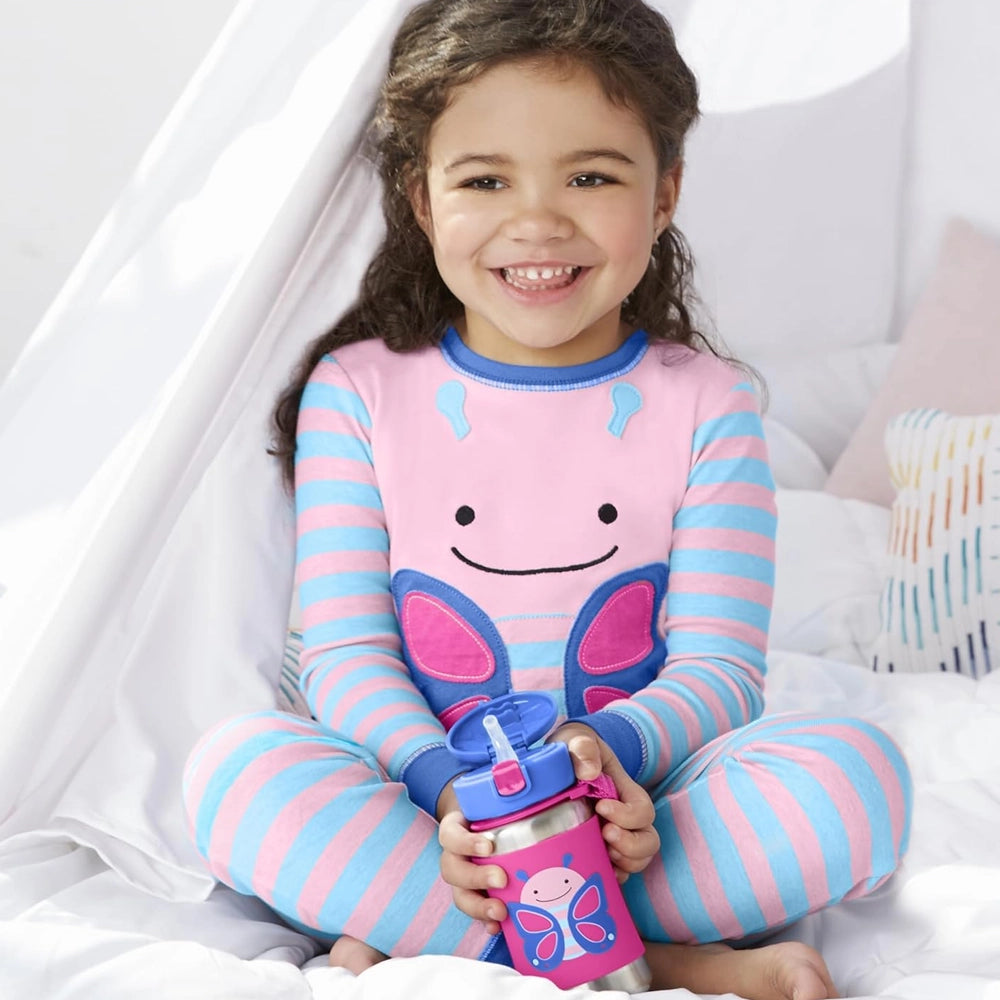 Skip Hop Gourde avec paille en acier inoxydable 350ml - Papillon