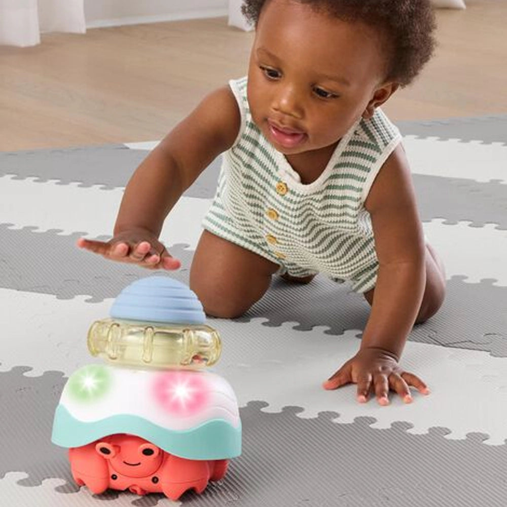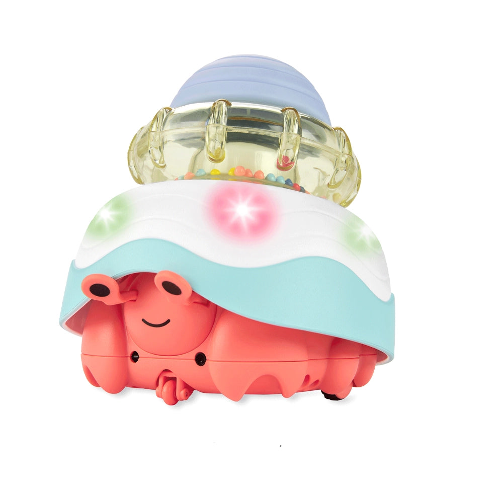 Les bébés rampants débutants adoreront suivre le crabe interactif qui sort de sa carapace et se déplace en cercles, tandis que les plus expérimentés seront encouragés à poursuivre le crabe qui se déplace de manière plus aléatoire.