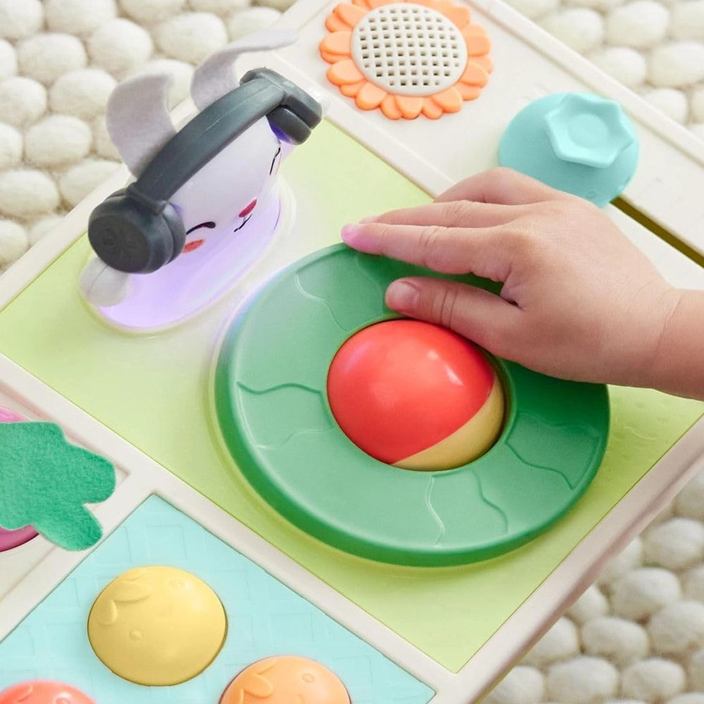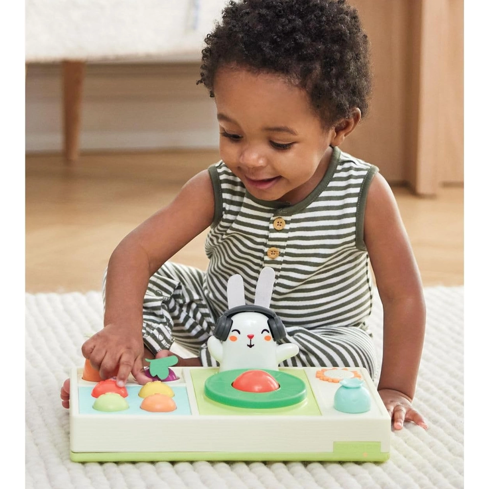 Avec son adorable lapin DJ lumineux, ses chansons entraînantes, ses effets sonores amusants et ses multiples textures, il invite les tout-petits à explorer tout en stimulant leur motricité fine, leur coordination œil-main et leur sens de la découverte.